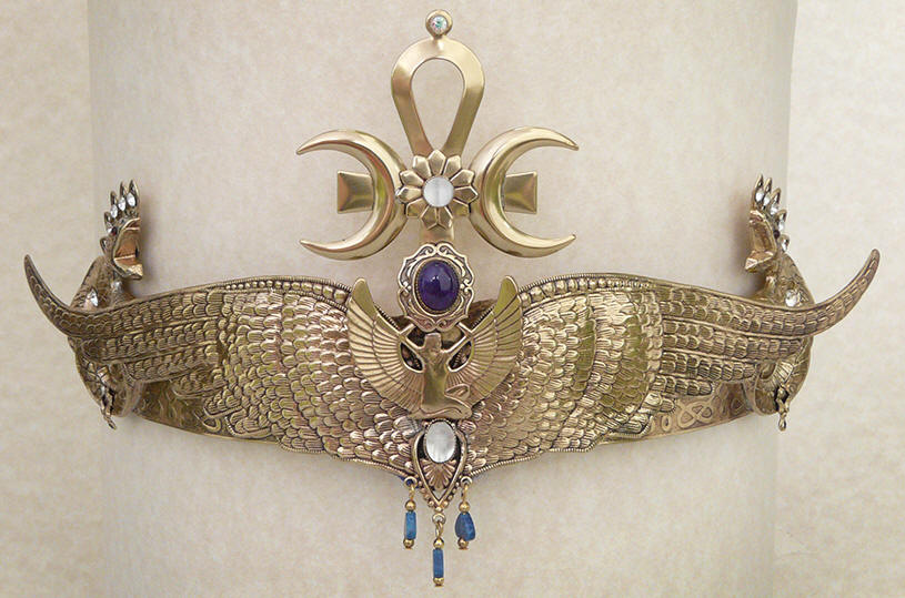 Winged Isis, with fluorite, moonstone, lapis lazuli, amethyst,