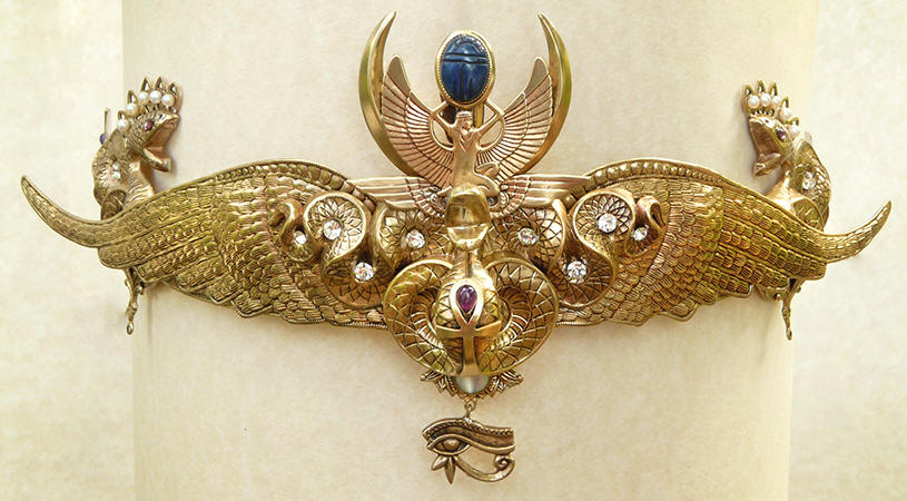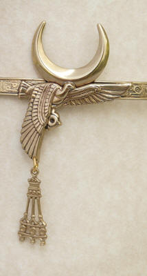 supports the Moon. Set with a carved quartz Scarab,